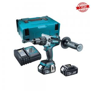 Makita DHP481RTJ 18v Li-ion Combi Drill (2 x 5.0Ah) DHP481RTJ The DHP481 is another addition to the ever popular 18v LXT range and boasts a maximum torque of 115Nm to tackle those tough tasks. Forward/reverse rotation. Single sleeve keyless chuck allows for easy bit installation/removal by one hand. Electric brake. Twin LED job light with afterglow. 2 mechanical gears. Battery fuel gauge. Variable speed control by trigger. Best possible ergonomic handle for drill-driver applications. Compact overall length. Battery Type: Li-ion Battery Power: 18v - 5.0Ah No Load SPeed: 0-550 / 0-2100 rpm Blows per Minute: 0-8250 / 0-31,500 bpm Max Torque: 115Nm Max in Steel: 13mm Max In Wood: 76mm Net weight: 2.7Kg Supplied With 2 x 18v - 5.0Ah Li-ion batteries, Fast charger, Makita macpac carry case